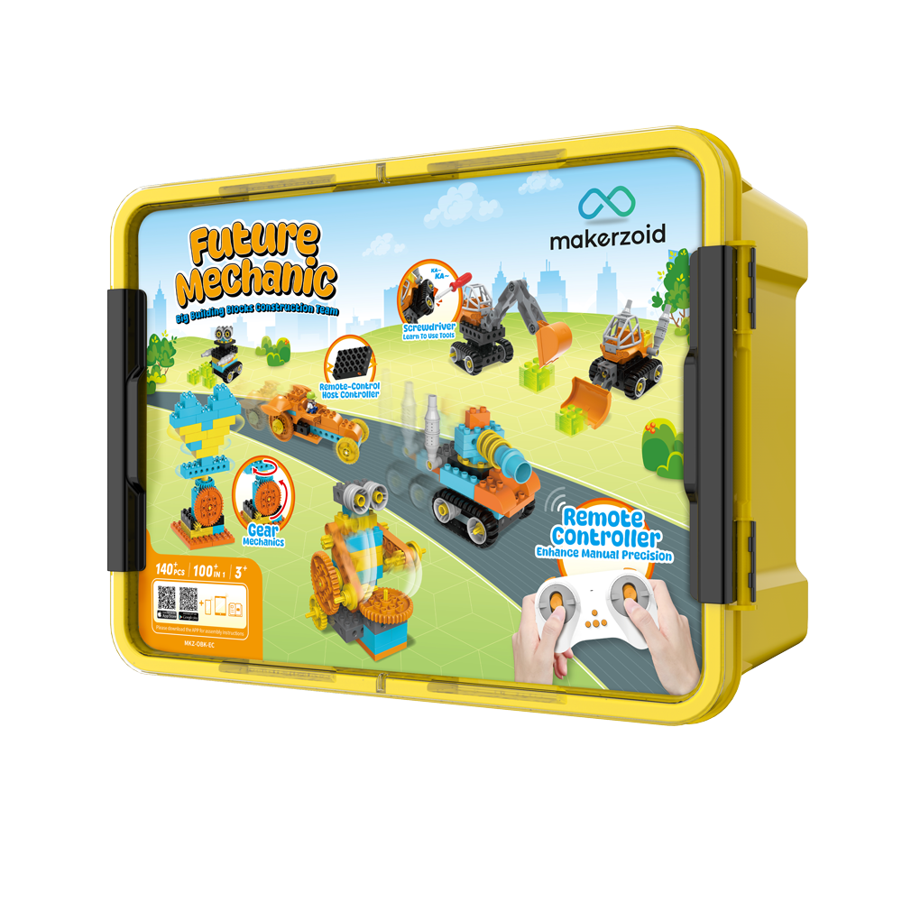 Makerzoid Future Mechanic is an educational STEM construction kit that helps kids learn mechanics, engineering, and problem-solving through hands-on building.