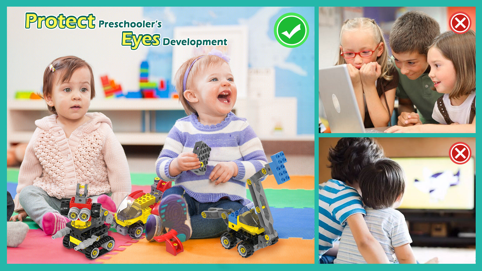 3-6 years old young kids are in Important period of eye development. MET big blocks could help keep kids staying away from electronic screens to protect their eyes and enjoy their hands-on playing time.